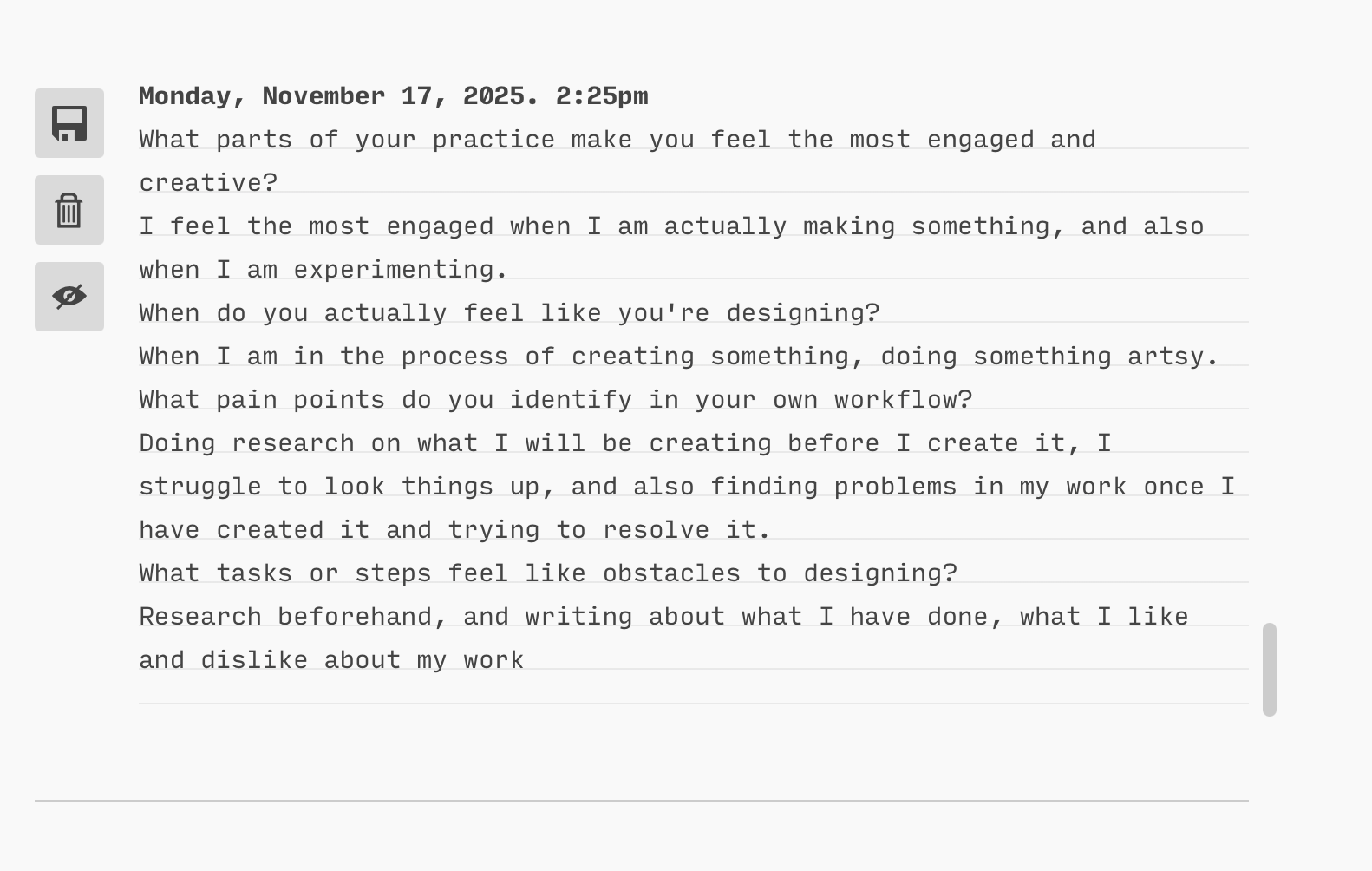 In this session i figured out what my strengths and weaknesses were when i am creating something.