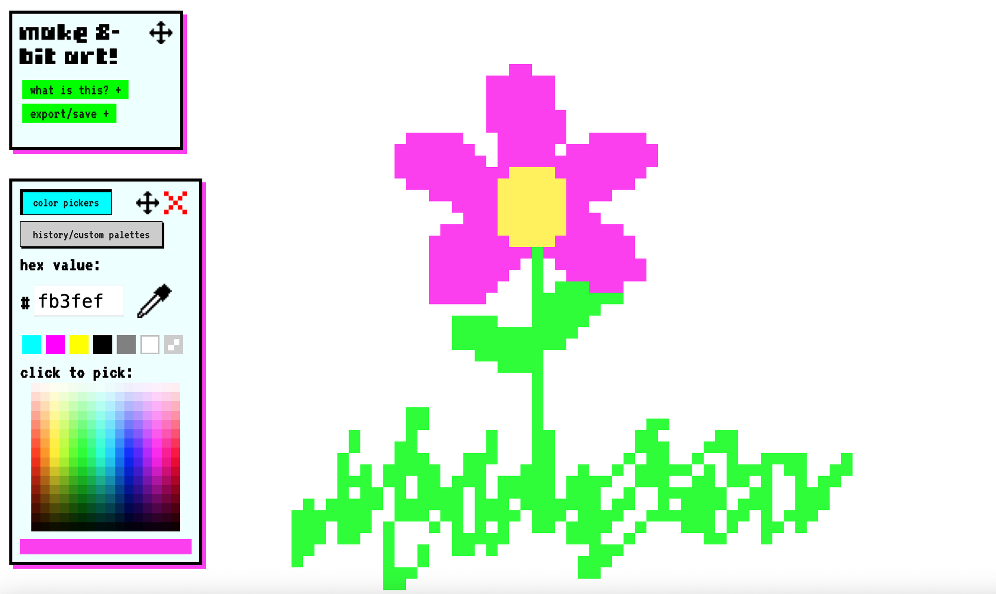 I would definitely want to find more websites to create things similar to what I created on p5studio as I really liked the outcome that I got from that. I would also like to do more things like the pixel art as I really enjoy doing digital drawings and things like that