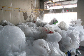 In 2016 installation Plastic Ocean (fig. 1) used over 20,000 pieces of plastic found on coast that were installed from the sealing. The purpose was to embody the floating plastic feeling; she individually sowed the plastic together in the correct height to show movement of the ocean. Her mission is to consider our contribution to the plastic waste in our oceans and find more eco friendlier solutions to plastic. The goal is to “reinforce empathy and consciousness for our underwater creatures,”[1] Tan Zi Xi stated. She also mentioned that each piece in the exhibition take roughly 500 – 1000 years to break down, not to mention it leaves a residue of micro plastics. Which we will eventually consume via water or food (fish), her message to the audience is to take accountability on the behaviours we have towards our planet. But also take accountability for our actions and change our habits to accommodate everyone not just humans. Her ultimate mission she’s trying to achieve is to get visitors to reconsider their everyday contribution to the ocean pollution and find ecofriendly alternatives. “If we humans have already produced more plastic within the past ten years than the whole of the last century,”. Therefore, she is trying to visually embody what our future holds if we are going to carry on at the rate we are now. Her overall objective is to raise an awareness of our actions therefore we can change our ways on plastic waste and live more ecofriendly therefore we can protect our planet and marine life.