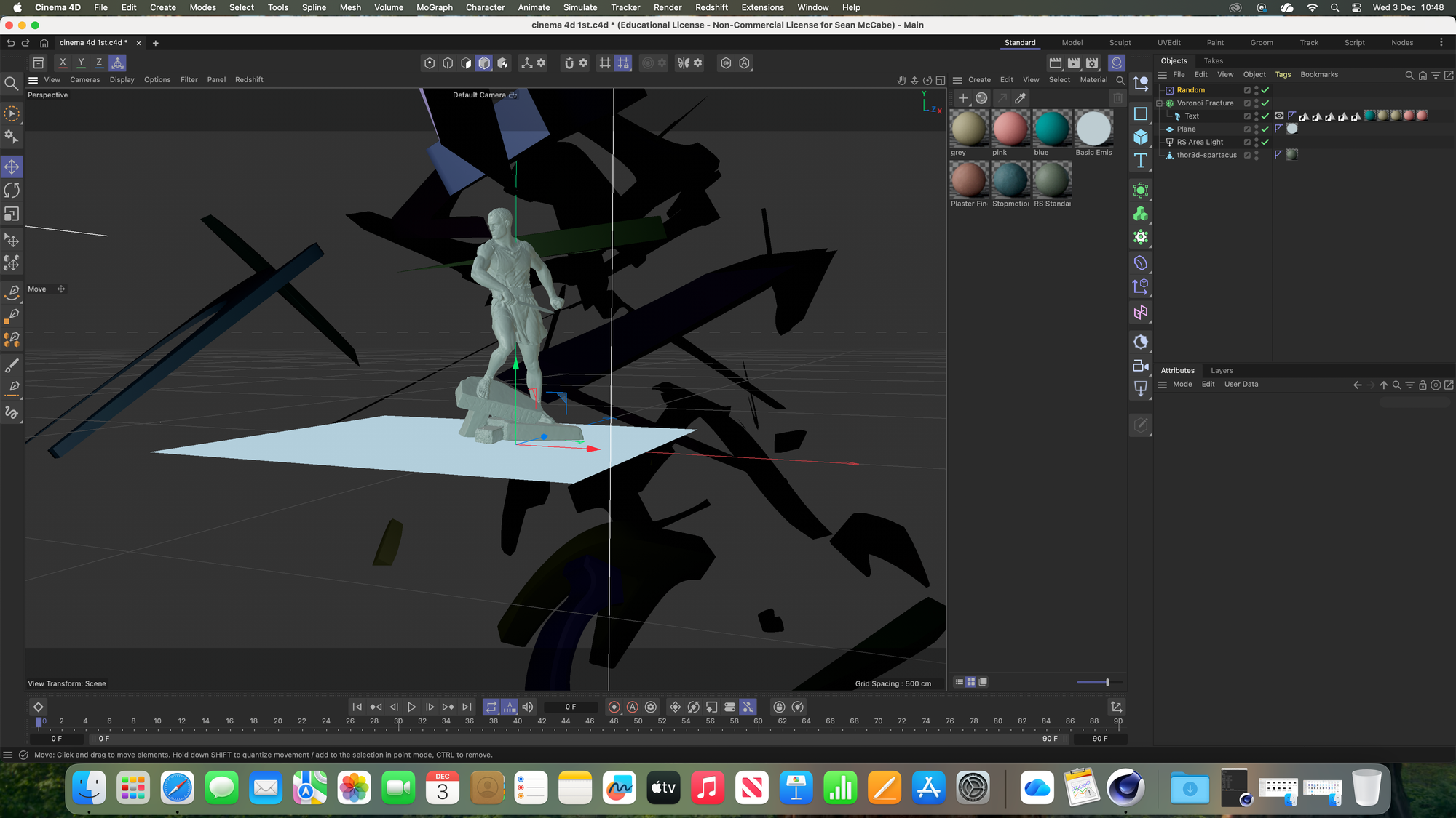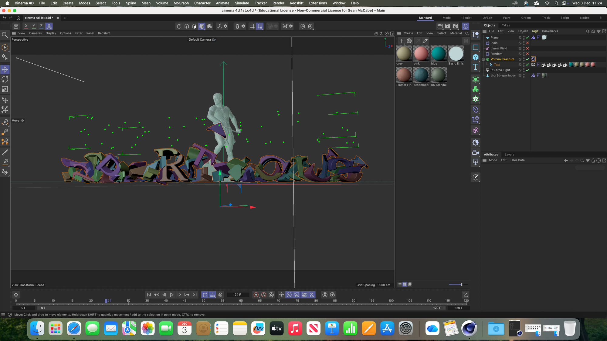 Within the 2 Wednesday sessions with John, i gathered a collection of screenshots during the process of beggining to learn cinema 4d. 3D tools and design has always interested me, but also confused me. I used to watch 3d cartoons when i was younger and was very interested in the craftsmanship that went into animating them, and whilst i still do watch 3d, i have begun to undertand more in time as to what makes these aniamtions work. I used to think it worked on a frame by frame basis, similar to 2d, but I don't think that's the case as much now. During the second Wednesday session, we actually animated some text being destroyed and recreated - this involved setting parameters and sequences that the computer rendered out, rather than individually moving elements. It's a manner of getting from point a to b, in a frame of time, rather than creating each individual step in the motion. Learning about 3d lighting and texturing was also really interesting, as each element we were introduced to are valuable and very relevant elements in creating anything within a 3d environment.