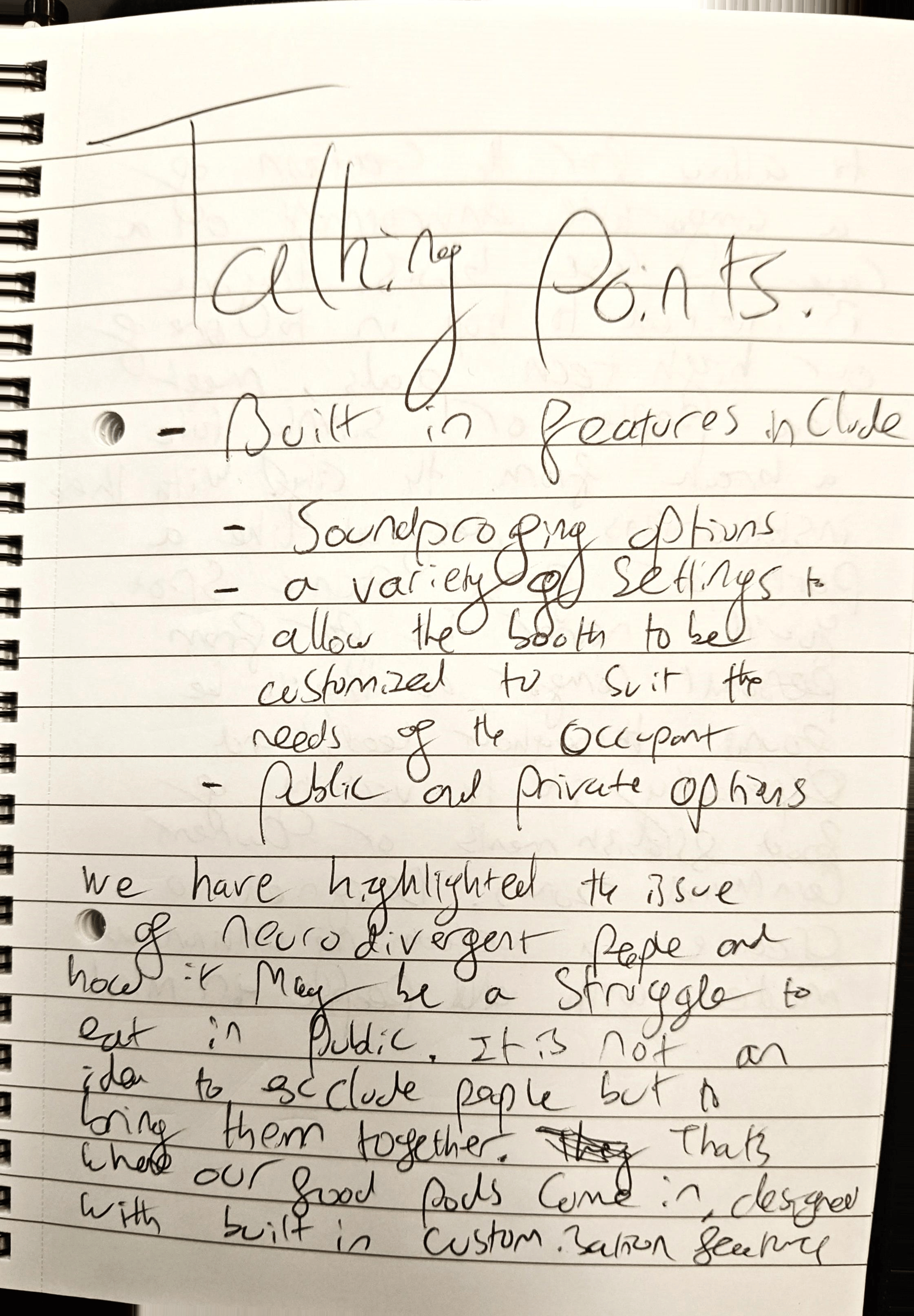 Some of the feedback we got from this, like many, was that this is solving something and not really bringing awareness. This does show people that there is a place for people who are neurodivergent, but this doesn't bring awareness as much as it should; it only solves the problem of what people might have in public spaces. I think a better approach might be something like a festival or an online meeting or a place where people who are neurodivergent can bring anything they created, from things like books, art, posters, etc. This should bring awareness to neurodivergent people, and it would help be a stepping stone for something in the future.
