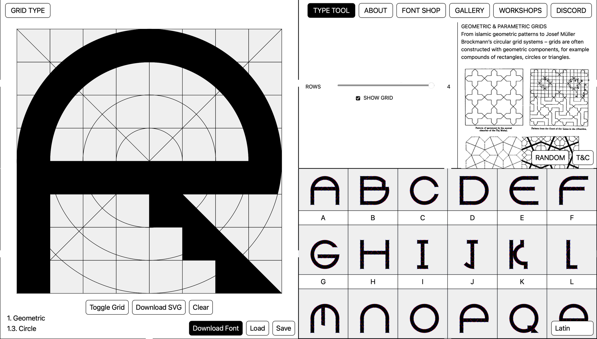 This website was about creating fonts. It had a few different grid templates to play with and was my favourite out of the experiments. I created a font that night using a circular grid. The restrictiveness of the grids helped to stop perfectionism and create abstract letterforms. I would like to maybe animate my font in the future or use it in real designs.