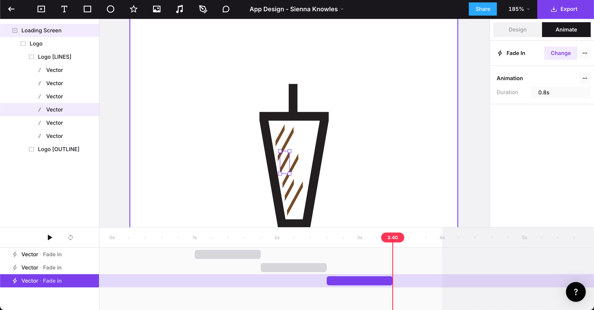 As a result of this failed development and similar iterations, I've decided to ungroup the lines of my design and animate each individually to appear consecutively to simulate that the page is loading: