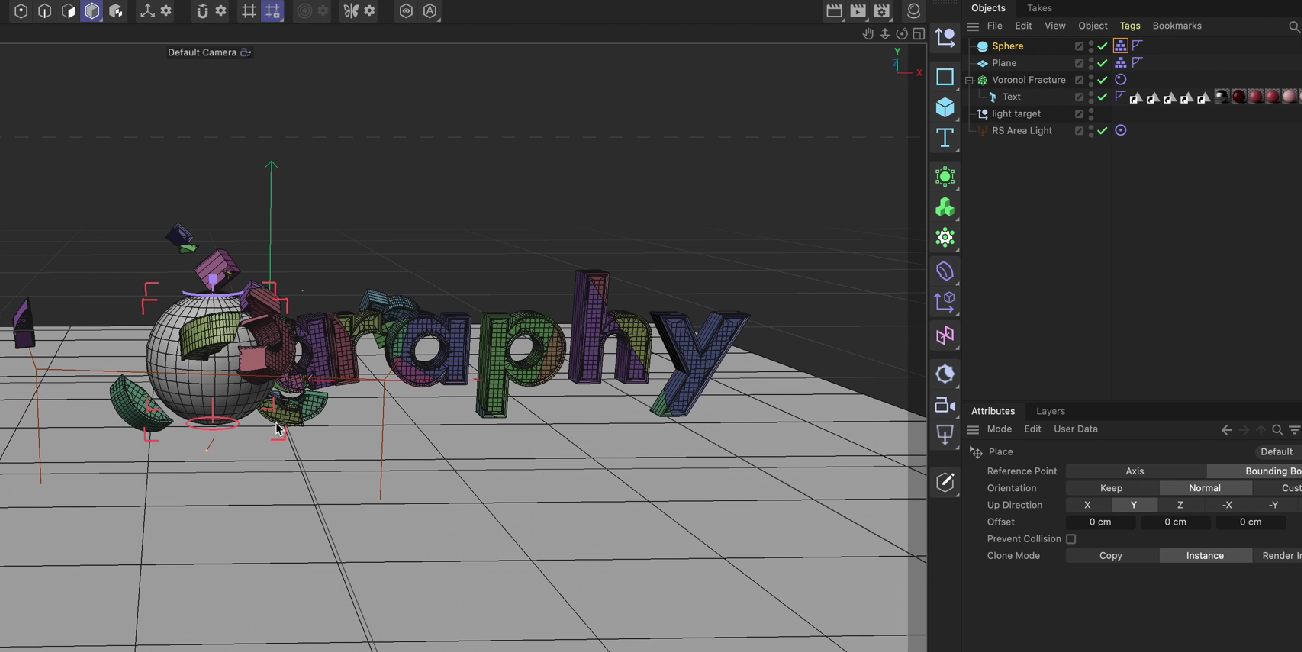 Jon then showed us how to make a 3D sphere crash into the letters, making them break apart and bounce off the floor. This part was really exciting to create.