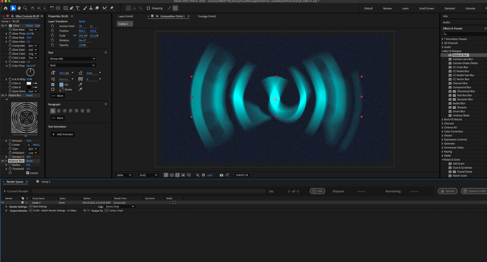 These are some screenshots of my process. I tried to make the animation smoother since the way the text blurred was quite slow and choppy.