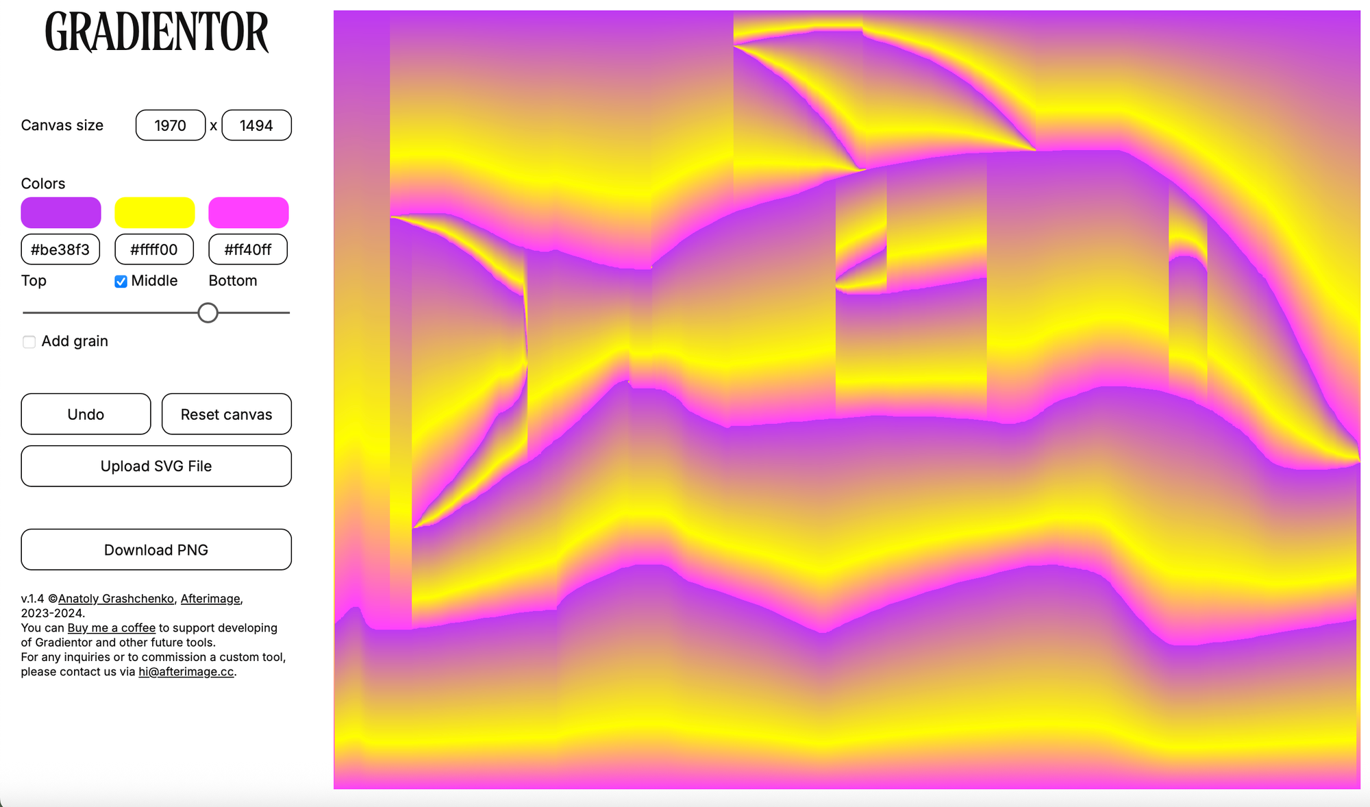 Gradientor is a free-to-use tool for drawing with gradients in a little bit silly way. Draw, adjust and save results as JPGs in up to 4k resolution. Have fun!