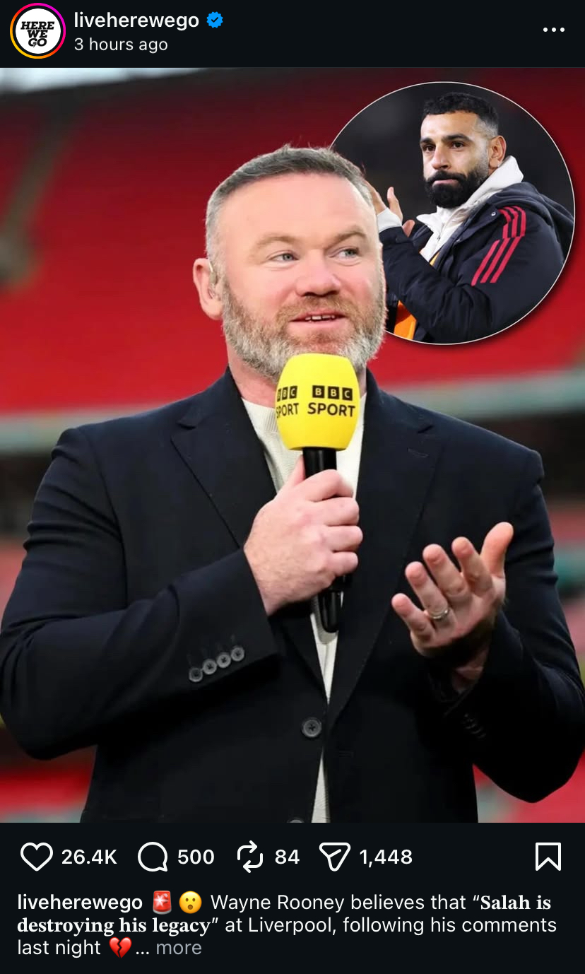 An insta post published by liveherewego discussing the recent situation surrounding Mohammed Salah and his controversial comments surrounding his game time and relationship with Liverpool manager Arne Slott.