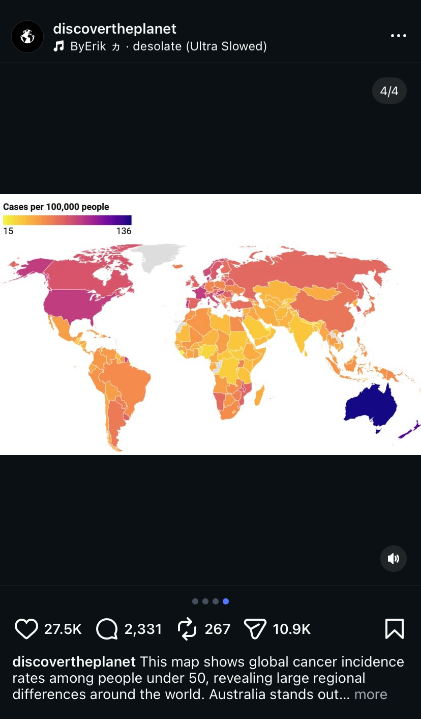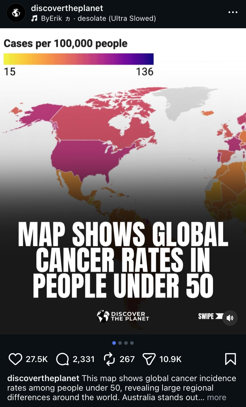 The source is stated as WHO - generally a reliable source for global health info. The page itself 'discovertheplanet' has 217k followers and the post had been liked and shared almost 40k times. The account posts viral posts, promoting information that will attract attention and grab quick views.