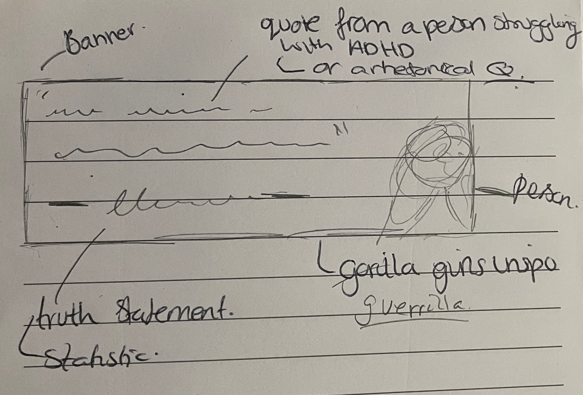 Another idea I thought of, to mainly spread awareness on ADHD was to create something which breaks the myths about the laziness and disorganisation of ADHD. Creating a myth vs fact campaign, hopefully stopping stereotypes.