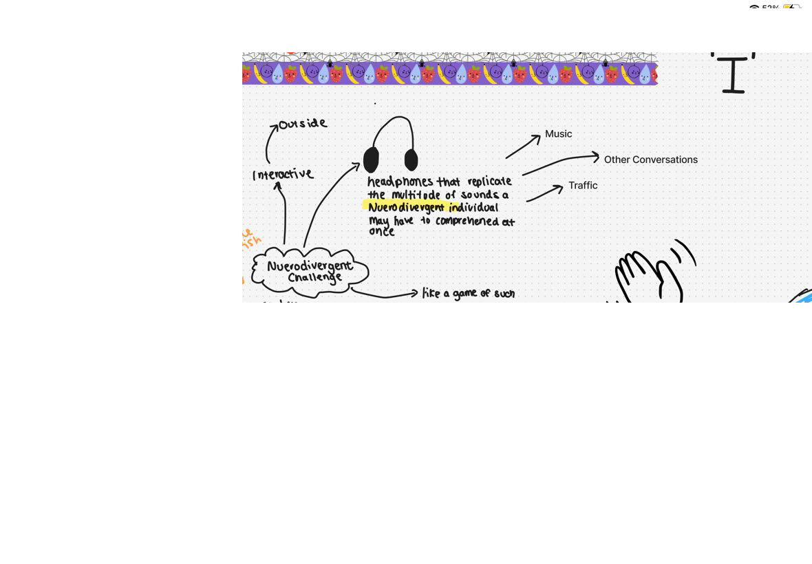 In this brief we were asked to create a hypothetical idea of raising awareness of neurodivergent awareness by creating an exhibition. We did it by talking about and using figma to create ideas. I found speaking about it freely the best way of finding solutions rather than any other method. I find it easier to communicate when I am "bouncing off" other peoples' ideas.