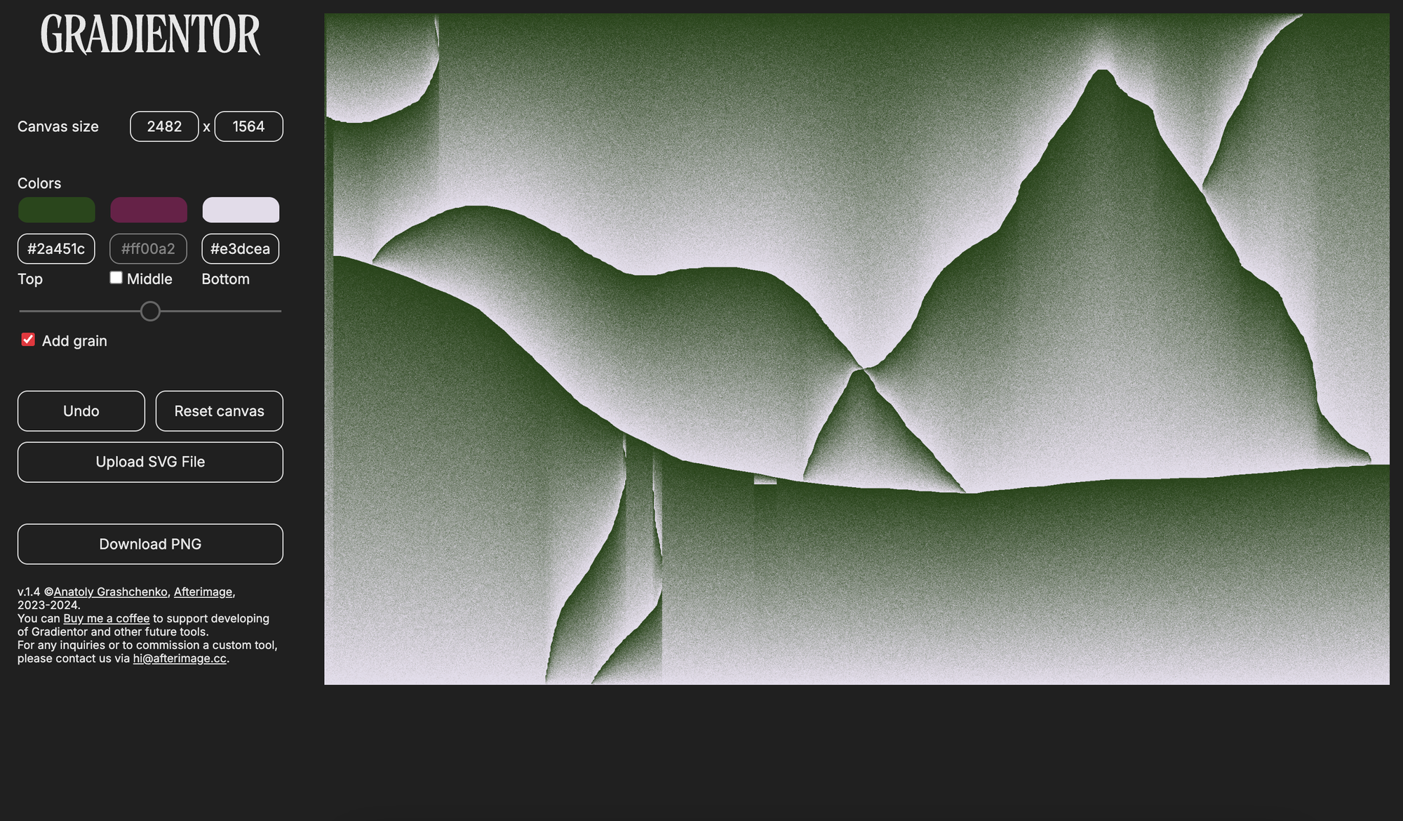 Gradientor is a free-to-use tool for drawing with gradients in a little bit silly way. Draw, adjust and save results as JPGs in up to 4k resolution. Have fun!