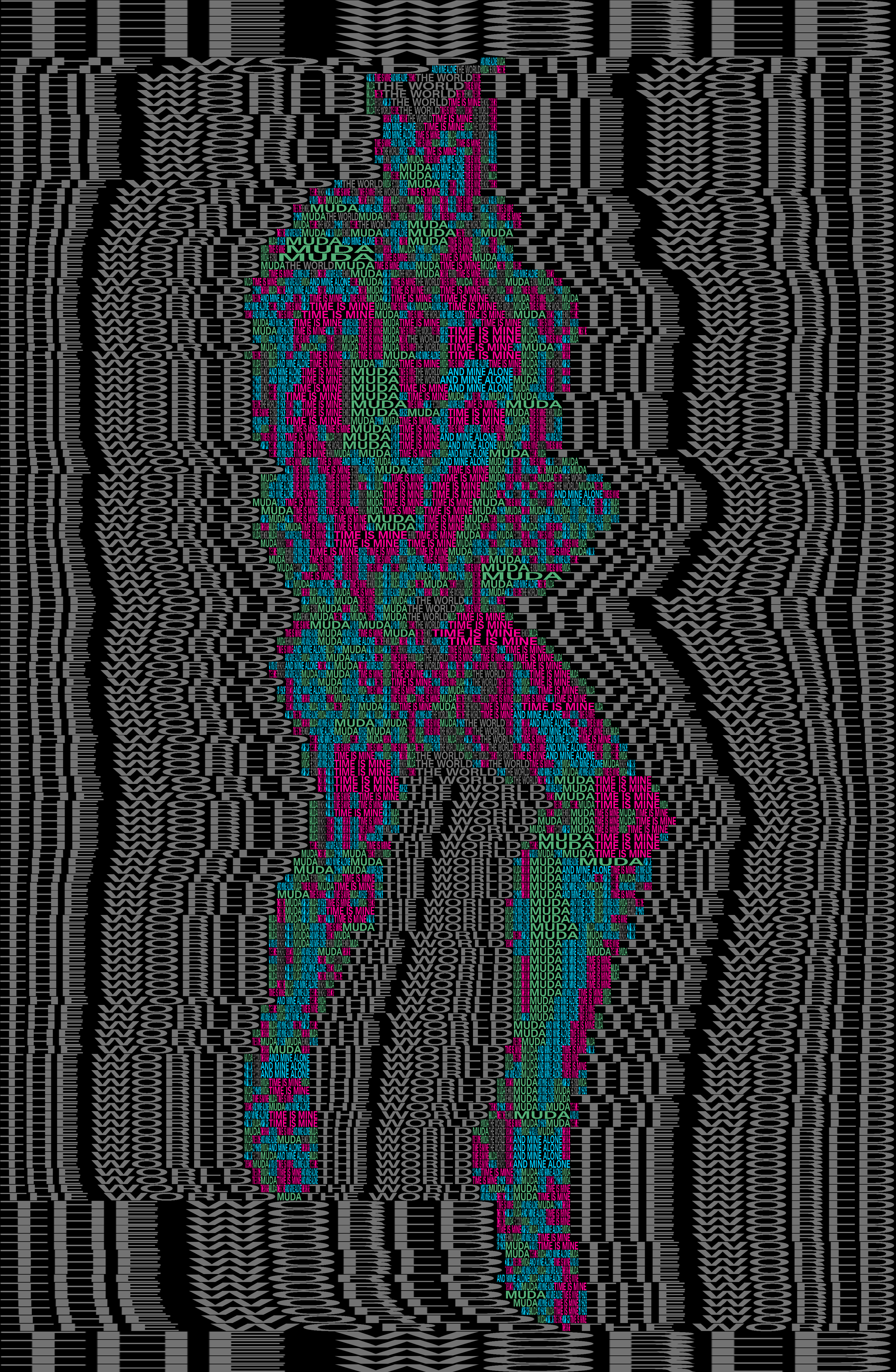 Same idea again but specifically using a video and then selecting a specific frame from within it. The bigger i made the text, the more of a textual pattern design it came out with,