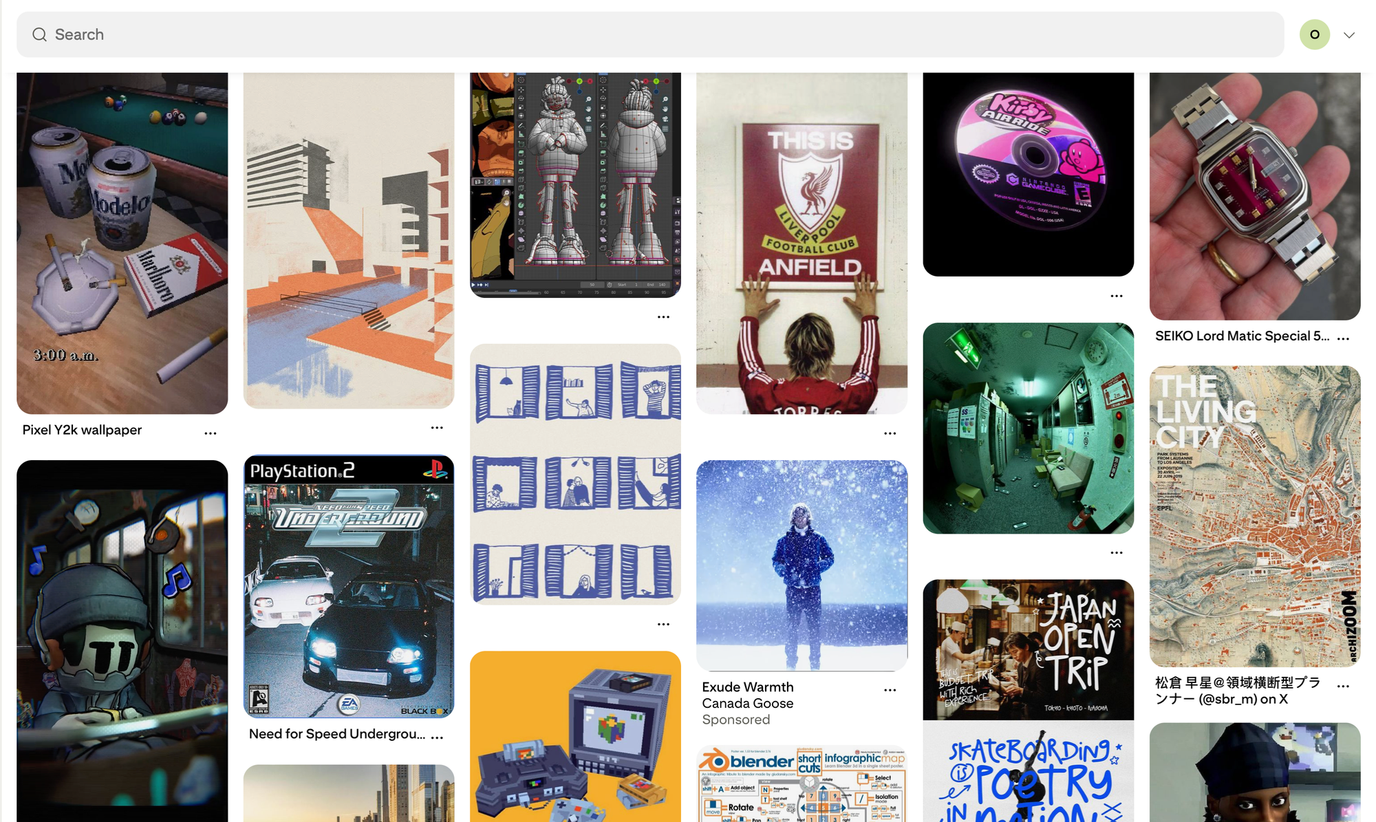 I think the best way to accurately show what my media diet looks like would be to show my pinterest home screen. Usually this is full of blender, drawings, fashion, football, animations and gelli printing.