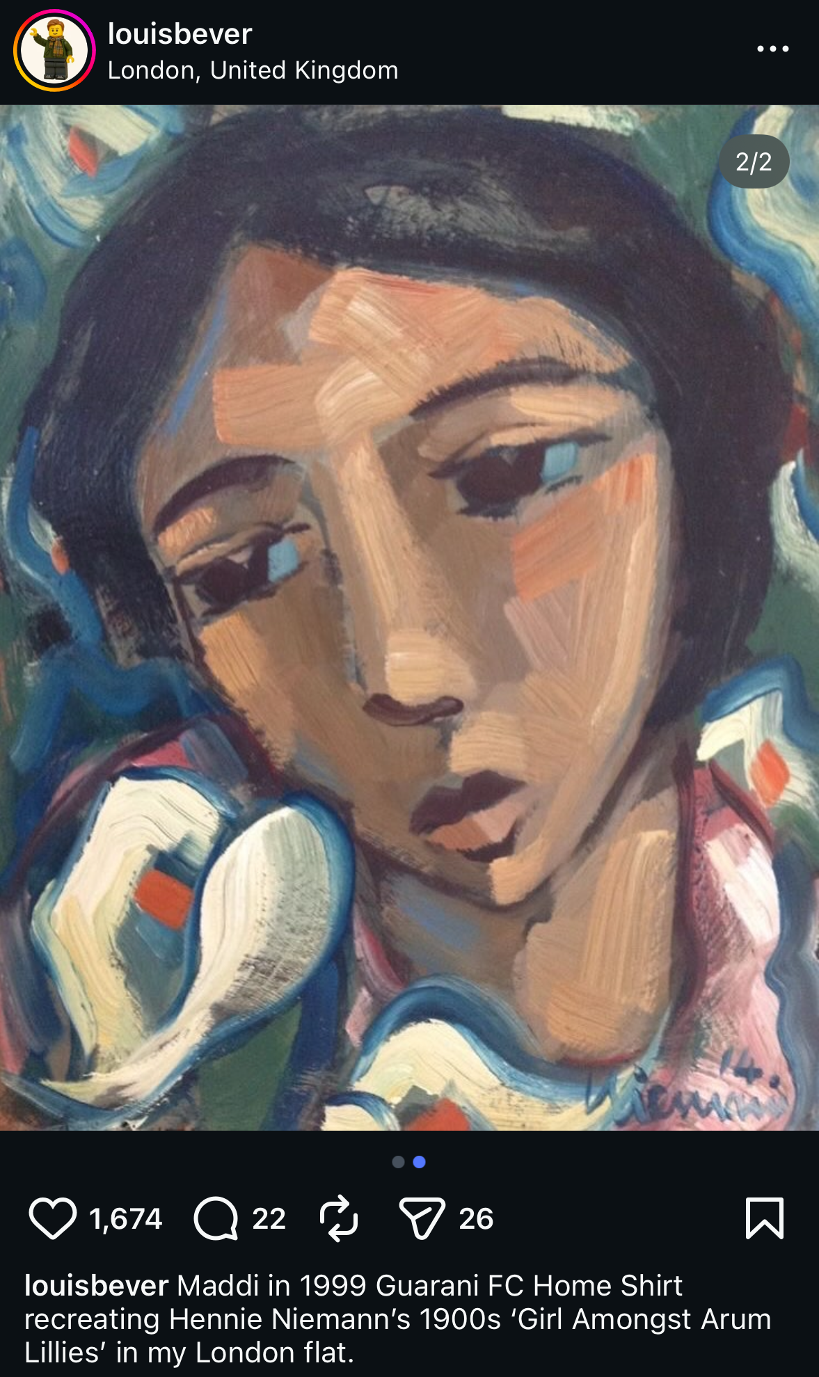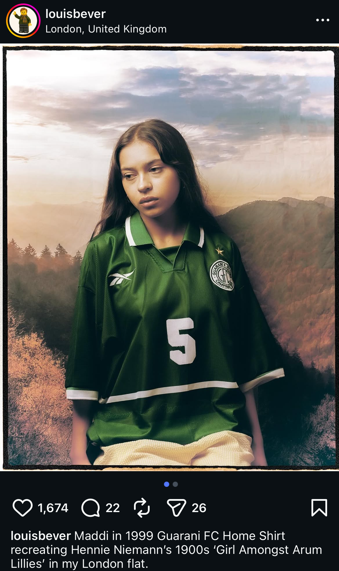 Louis recreates historic art often having the models in football shirts allowing these two worlds coexist. Very fun concept and the outcome is beautiful.
