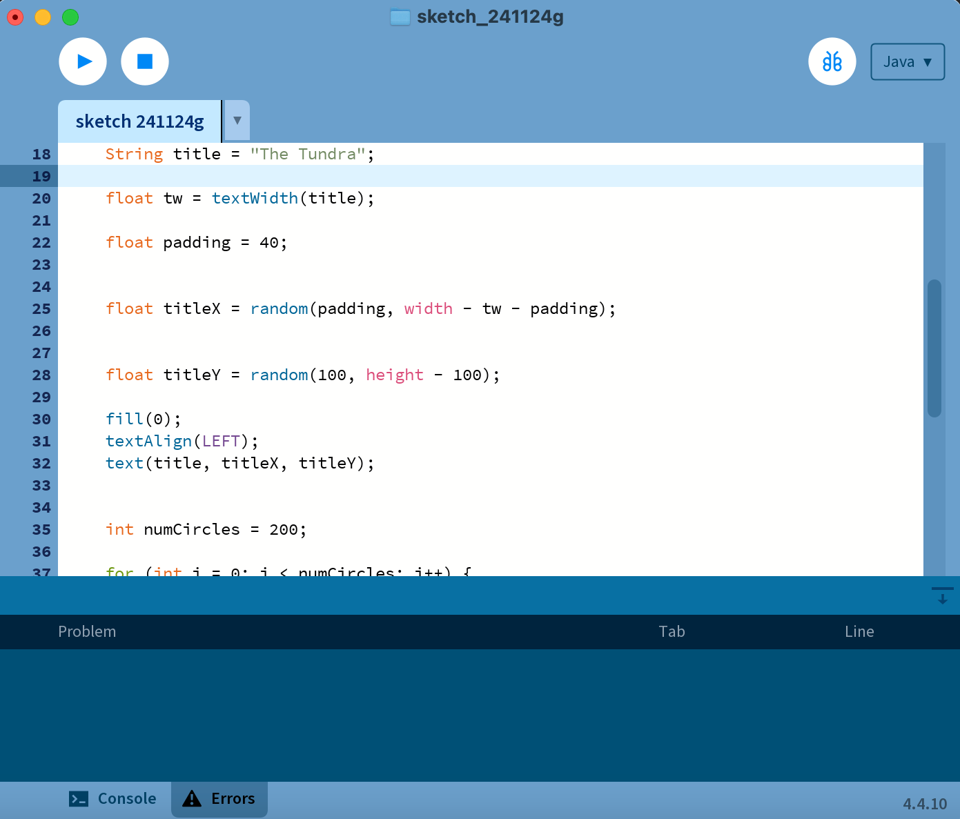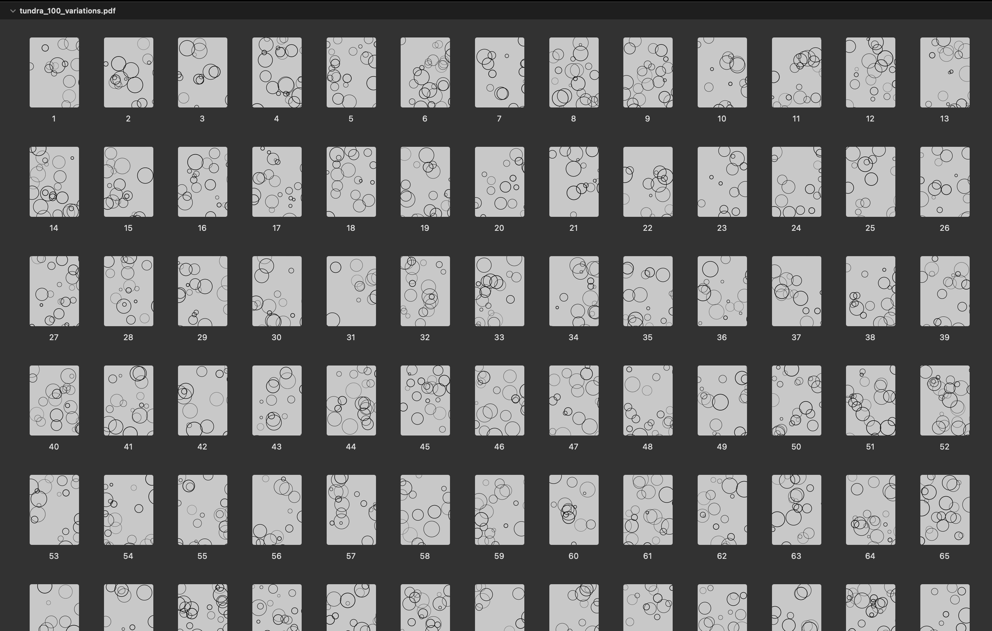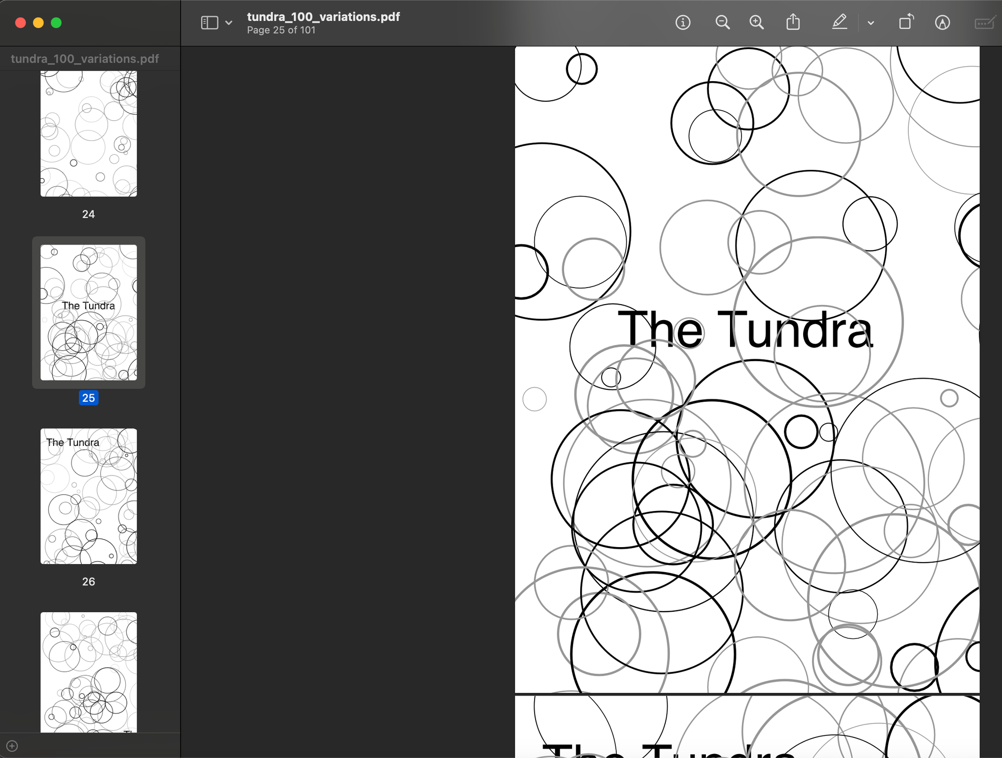 We were then given the task of trying to replicate this method to create 100 pages for a book cover. I decided to name mine 'The Tundra' and decided to create hundreds of circles overlapping and varying in opacity. The text was the hardest part as 1 in 3 were actually fitting inside the page.