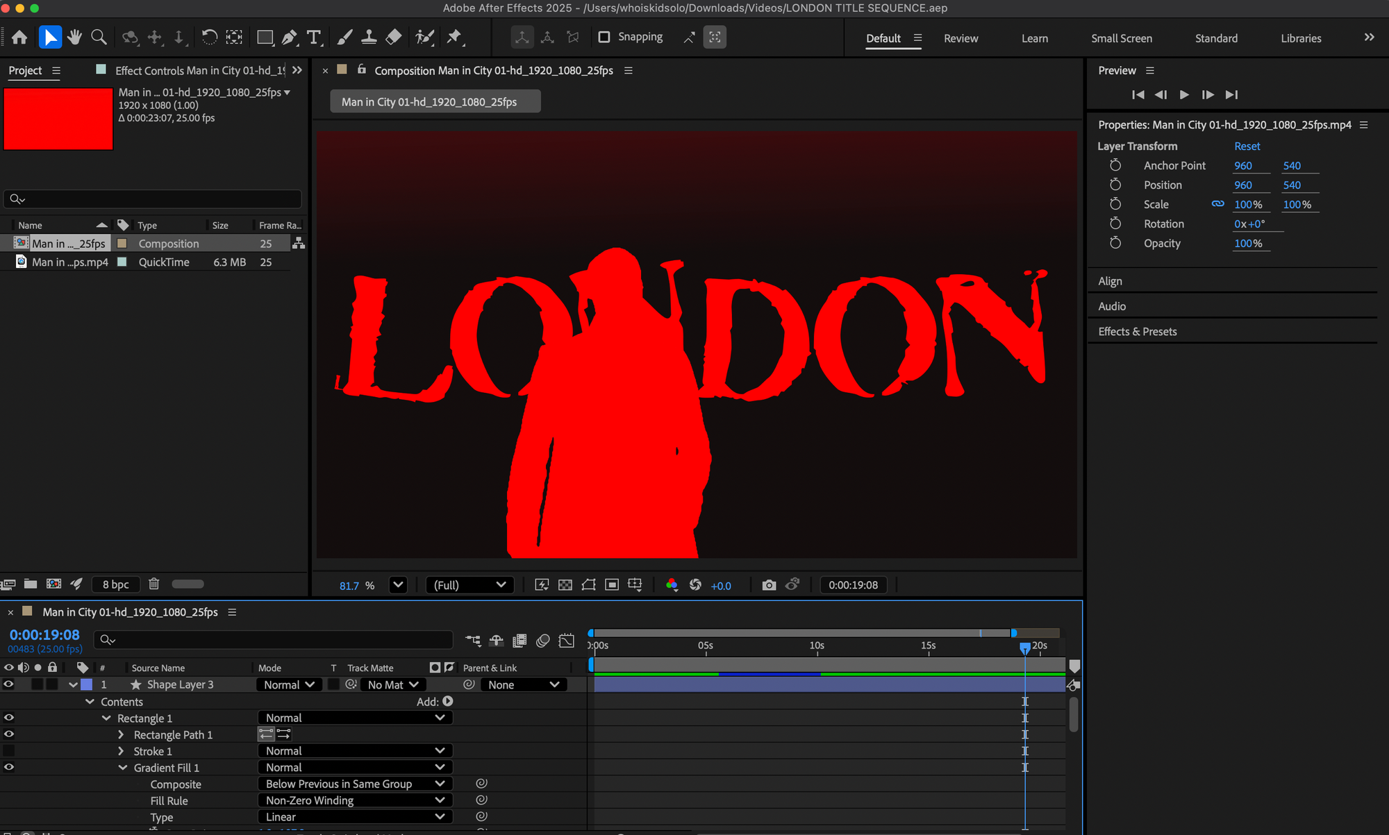 Jon walked us through a series of small tasks to build the sequence step by step. We all started with the exact same clip of a man walking and followed the same instructions. The main technique we focused on was rotoscoping. Using the rotobrush, we cut the man out from the background so we could duplicate him and place things behind him. It was a clean introduction to compositing and understanding how layers actually interact in motion graphics.