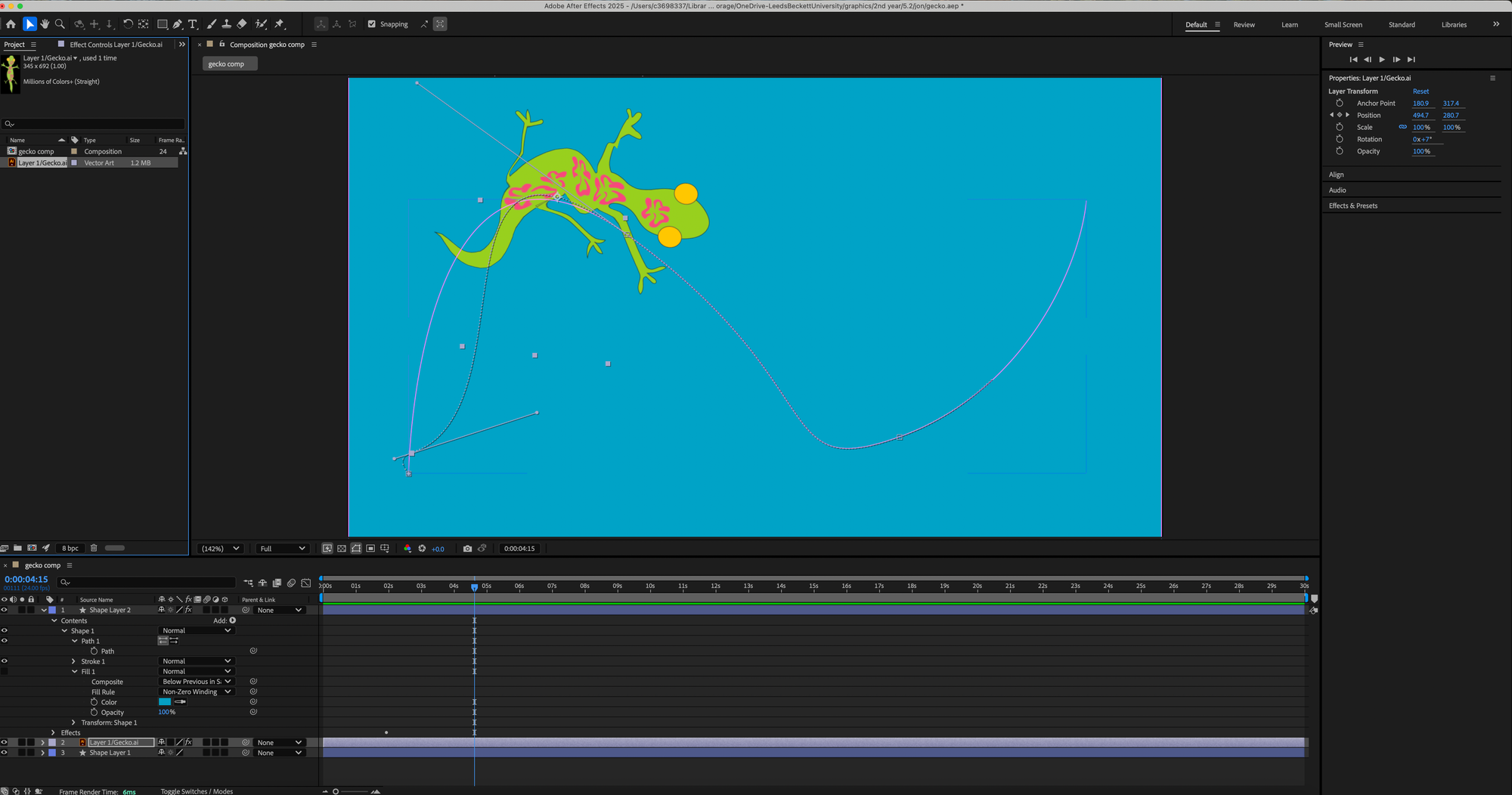 This project was challenging for me again because it was hard to figure out how to use the keyframes and make the text move at the right time. I think the fact that they are shown as circular and so small makes it hard to see them in the right place. I think if each layer I could see all at once, rather than scrolling, it would be easier for me to properly line everything up.