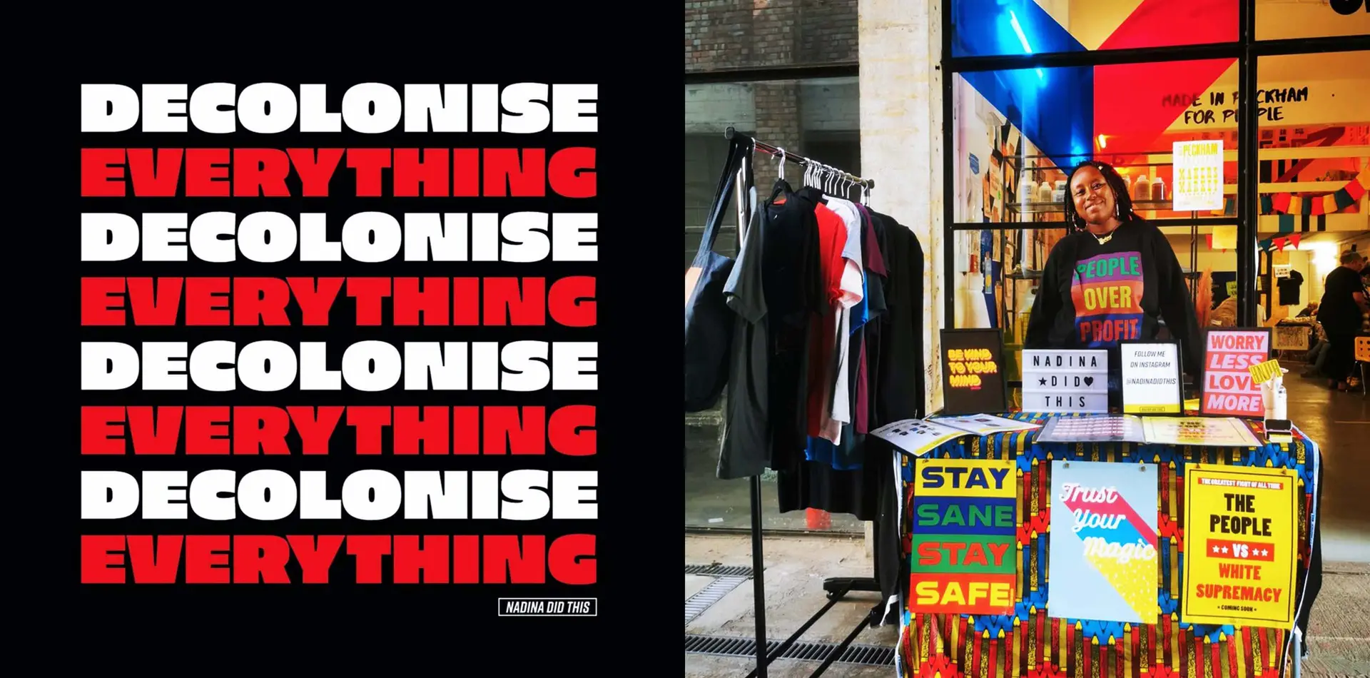 Nadina Ali, a self-taught graphic designer and self-described socially-engaged visual artist, is currently based in London but was born and riased in France to immigrant African parents. She suggests that designers like her can flow more comfortably into the design industry through challenging the systematic barriers. She argues that, “a lot of companies in the creative industries are predominantly - if not entirely - white, and that’s not being challenged enough”.