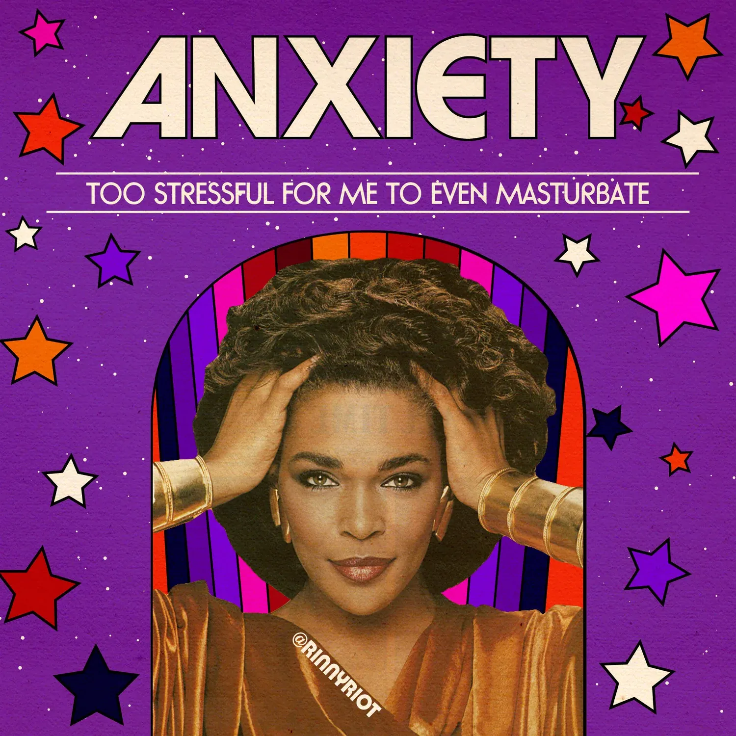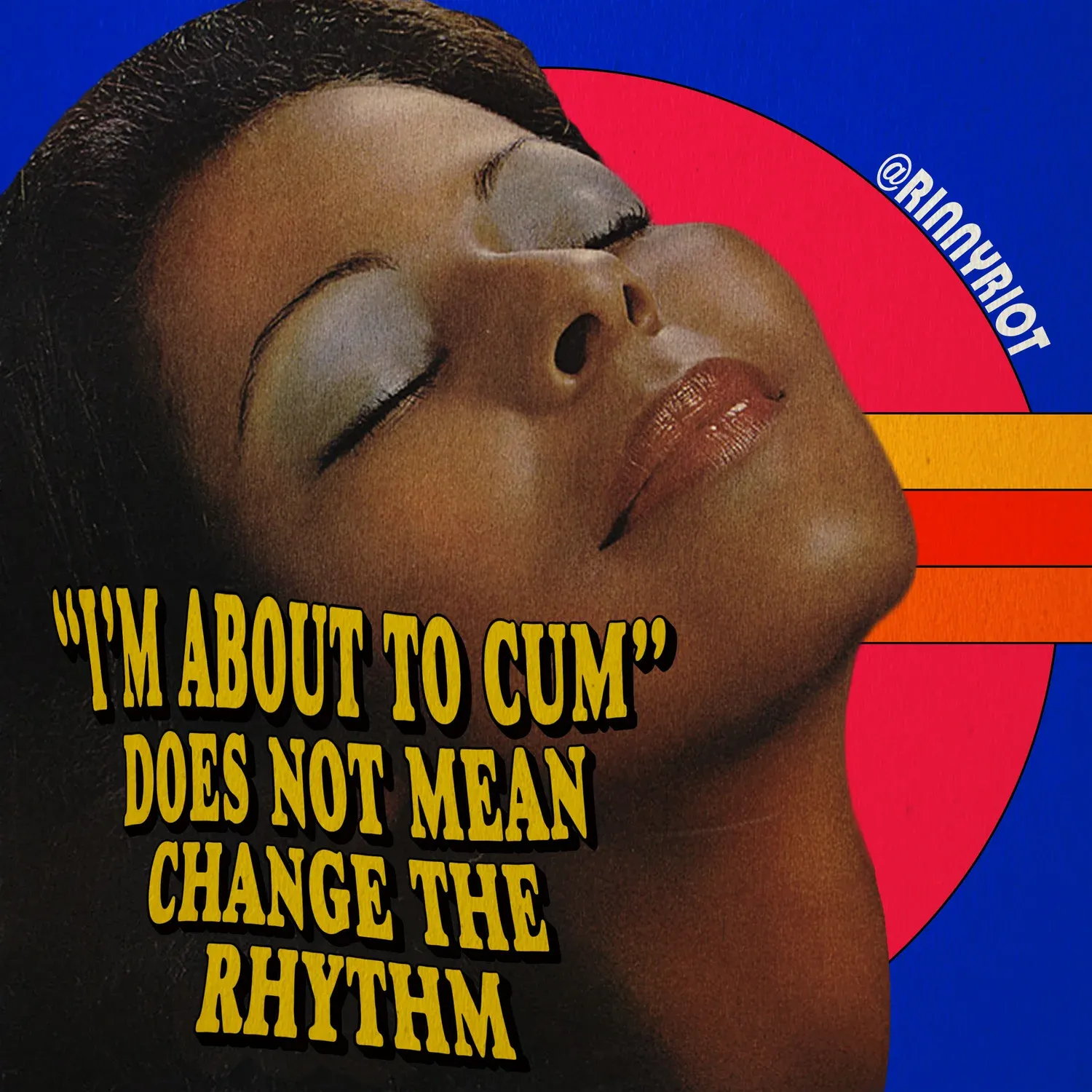 Rinny Perkins (professionally known as Rinny Riot) is a Los Angeles based comedian, writer, actor, graphic designer and activist (Perkins, n.d.). Although, initially recognised for her comedy and new book ‘Not everyone is going to like you: Thoughts from a former people pleaser’ (Perkins, 2023), she has been highly regarded for her “digital collages” (Gill, 2019b); visually distinctive posters where she integrates humour with retro design, using her comedic influence to highlight the intersections of feminist perspective in black womanhood.