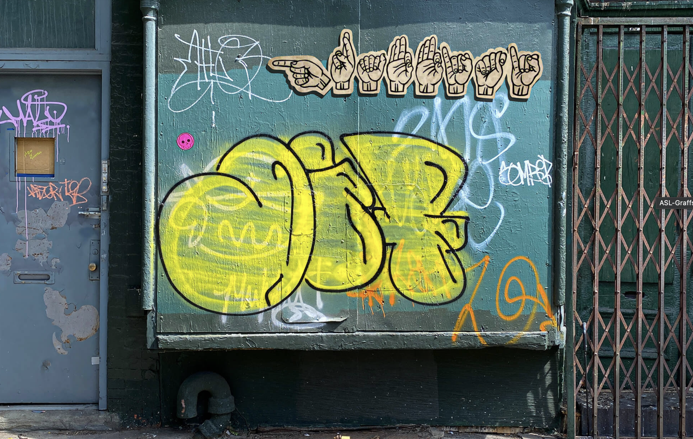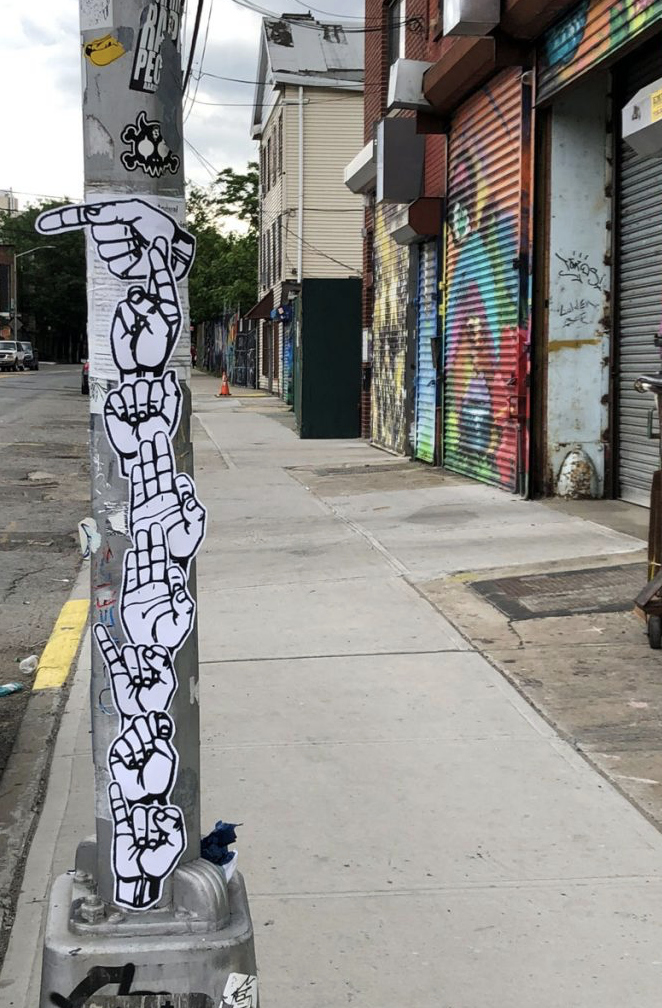 American Sign Language within Graffiti, creating Connections:Focusing specifically on accessibility in public spaces, “a strong urge to merge the worlds of graffiti, accessibility, and community,” through projects that incorporate American Sign Language into public art. The act of representing a language in places where many people have never seen makes this https://www.facebook.com/groups/565218893829369/posts/2575383906146181/ “Art becomes a voice. A record of language deprivation, identity reclaimed, and joy built through shared communication.” Seslow creates printed cut-out letterforms that spell ‘graffiti’ across street lamps, buildings and in green areas, creating a bridge between visual language and street culture. to send a message “Language is alive. Art is alive.” https://www.ryanseslow.com/american-sign-language-asl-in-public-space-graffiti-culture-and-connection/